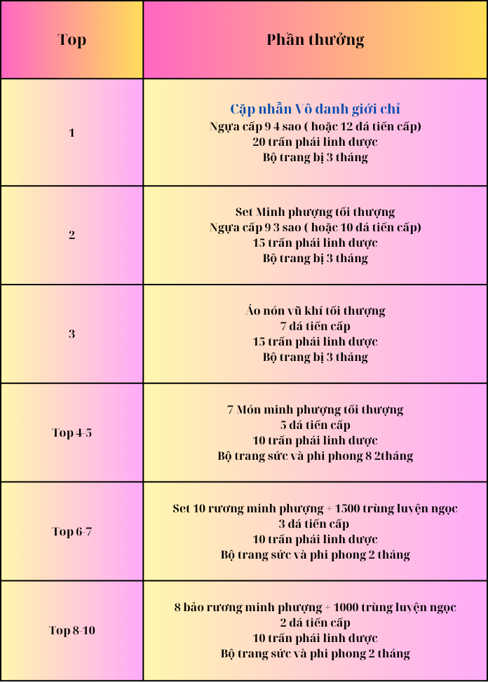 PHẦN THƯỞNG ĐUA TOP