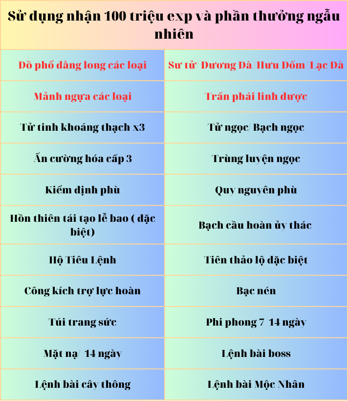 Giới hạn sử dụng : Sử dụng tối đa 1000 Quà quốc khánh (10x/1) Và 2000 Pháo hoa quốc khánh (20v/1).