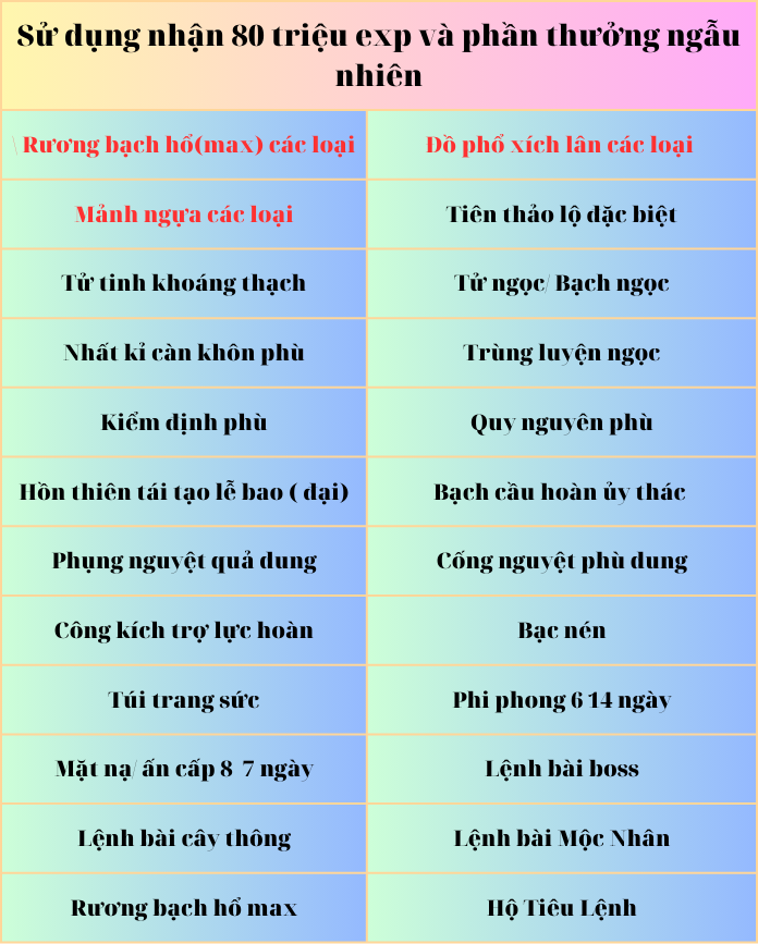 Phần thưởng khi sử dụng Kẹo Hồ Lô Đường