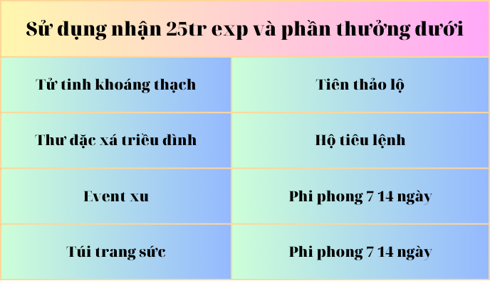Bánh chưng thường sử dụng nhận 25 triệu kinh nghiệm và phần thưởng ngẫu nhiên