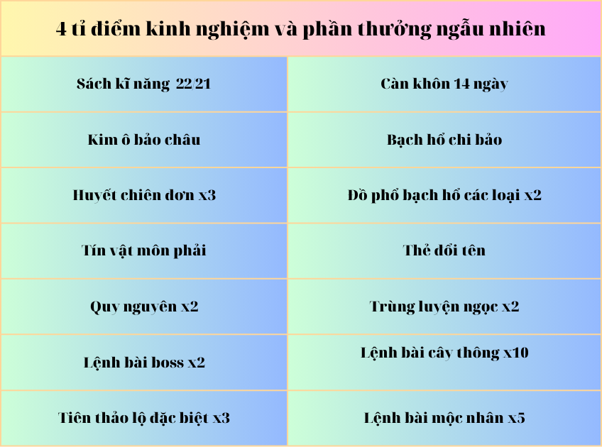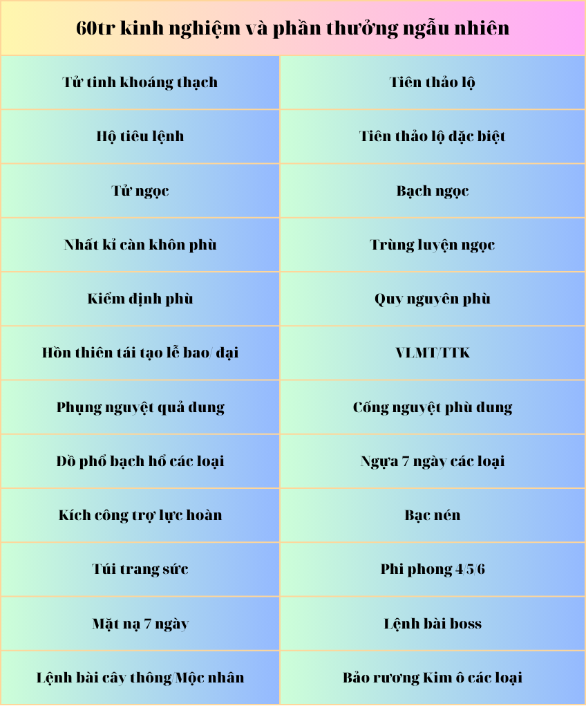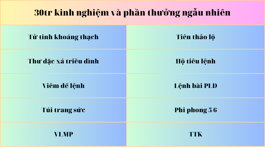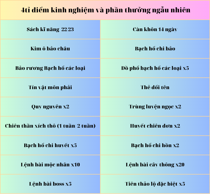 Khi đạt mốc 600 và 1200 sẽ được nhận thêm kinh nghiệm và nhiều phần thưởng hấp dẫn