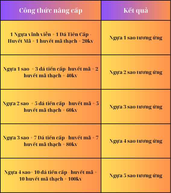 NÂNG CẤP VÀ TĂNG SAO NGỰA