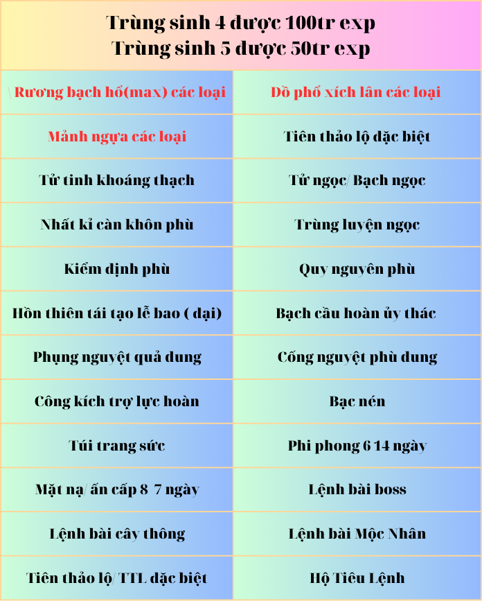 Và Khi sử dụng đến 60k cái thì sẽ nhận được 1 bộ Xích Lân Tối Thượng.