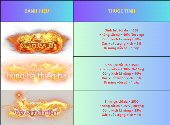 THUỘC TÍNH CÁC DANH HIỆU