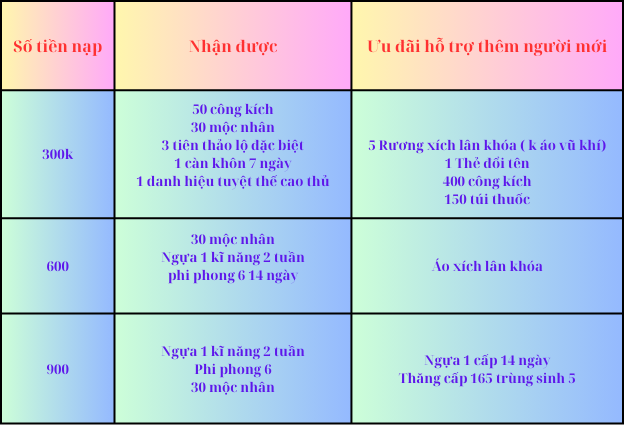 Cùng với đó là gói phúc lợi mới để tìm kiếm thêm người chơi, tạo điều kiện cho người mới có thể bắt nhịp với server.