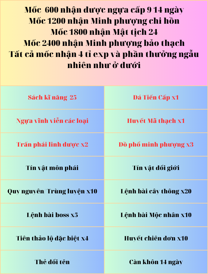 Sự kiện Tết 2025 với vô vàng giải thưởng cực kì giá trị sẽ giúp anh em bằng hữu có thể đạt sức mạnh Vô địch thiên hạ. Sự kiện sẽ kết thúc vào ngày 1/2/2025.