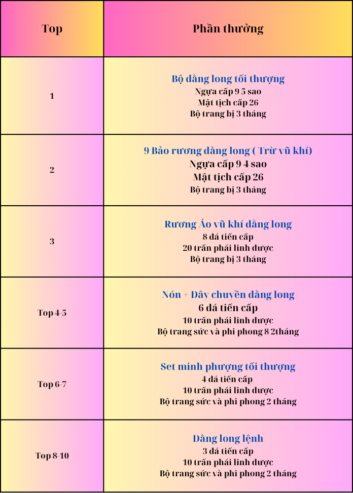 Lưu ý : Chỉ có sự kiện tại đua top này mới có, các đợt đua top sau sẽ k có mốc như vậy nữa.