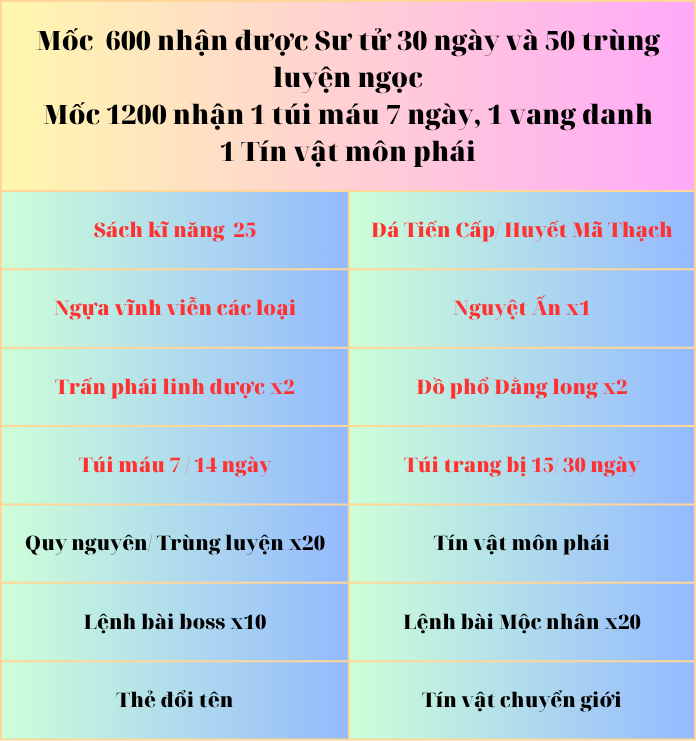PHẦN THƯỞNG ĐẠT MỐC BÍ KÍP VÕ CÔNG THƯỢNG THỪA