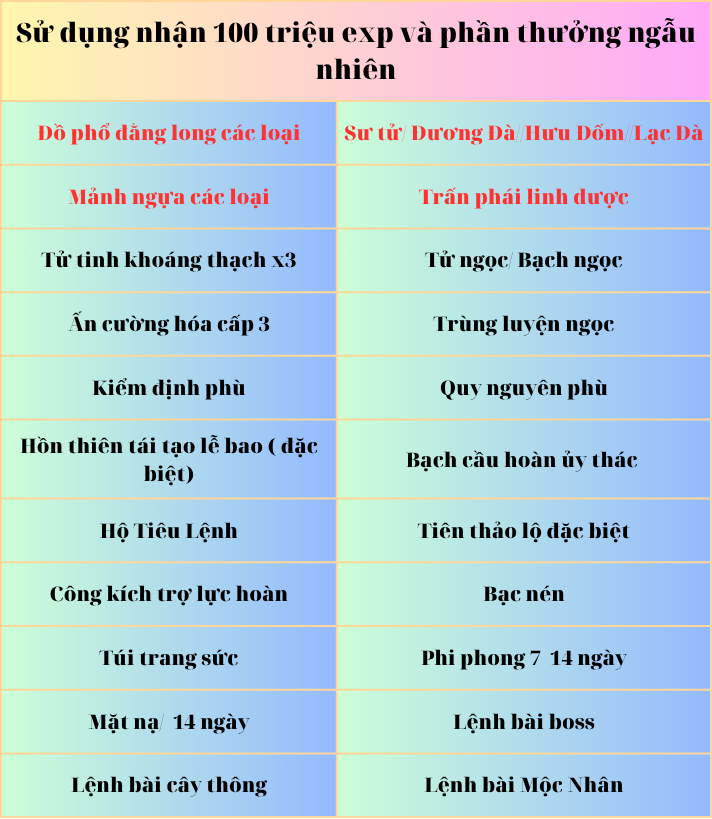 PHẦN THƯỞNG SỬ DỤNG BÍ KÍP VÕ CÔNG THƯỢNG THỪA